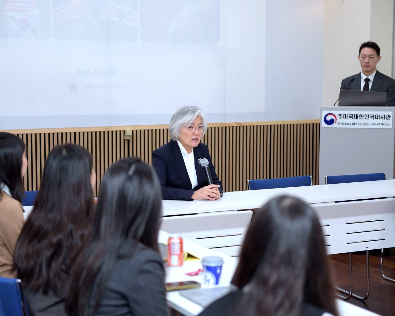 강경화 주미대사는 그 어느 때보다 급변하고 있는 국제질서 속에서 우리 외교의 중심이 되는 한미동맹과 향후 대미외교의 주안점, 대사관의 역할 등에 대해 학생들과 진솔한 이야기를 나누는 한편, 앞으로 한미 양국 관계는 물론 국제사회를 당차게 이끌어갈 미래 세대의 포부와 역할이 필요하다고 하고, 이를 위해 각 개인의 실력을 성실히 갈고 닦을 것을 당부하였습니다.